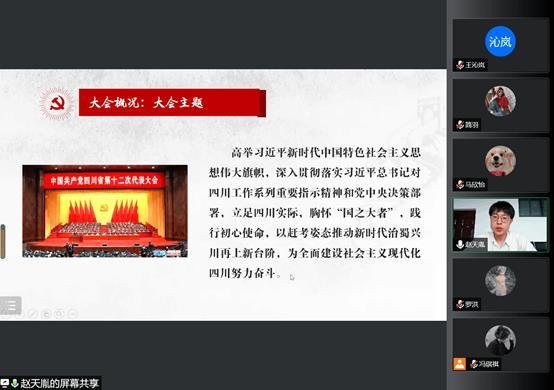 会临时党支部依托腾讯会议APP开展学习贯彻省第十二次党代会精神学习活动。本次活动由本科汉语党支部书记刘晗悦同志主持,特别邀请到在线直播