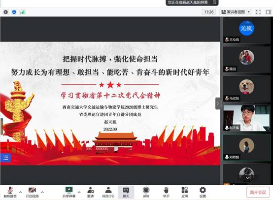 、省委理论宣讲团青年宣讲分团成员赵天胤同志担任主讲人。
