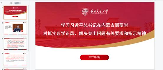 首先,胡红同志领学述学“学习习近平总书记在内蒙古调研时对抓实以学正风、解决突出问题有关要求和指示精神”,指出要深入学习领会习近平总书记关于以学正风的重要指示,要着眼于增强中华民族共同体意识,大兴务实之风,深化调查研究,促进学习成果转化。