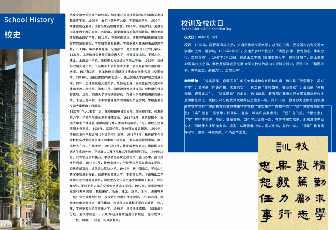 接着,刘宇嘉同志向支部成员讲解折页的制作过程。参与制作的支部成员通过观看校史纪录片《竢实扬华》对校史有了更深一步的了解,做好前期准备之后相互交流折页的内容以及想法,最后决定采用简洁明了的制作风格,以具有交大特色的蓝色作为底色,并插图融入交大的历史底蕴。在内容规划上,折页第一部分为具有交大特色的建筑,第二部分为校史,第三和第四部分为八位优秀校友的生平事迹和杰出贡献。