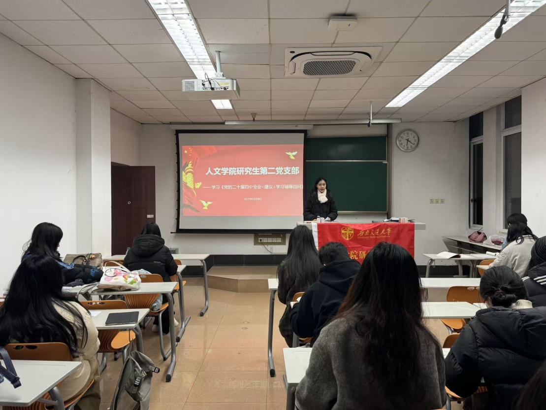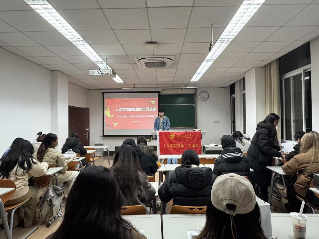 研第二党支部于九里校区J4221教室组织开展12月主题党日活动。本次活动由党支部书记上官婧钰同志主持,支部全体成员共同参与学习。