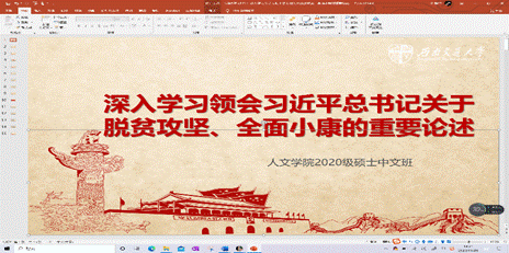2020级中文硕士党支部于2020年11月24日晚8点在腾讯会议开展了主题学习活动,会议由党支部书记李艳菲同志主持。