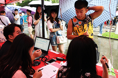 8月30日早上6点,天气阴冷,低温夹杂着细雨,志愿者却都早早来到位于南区宿舍的在线直播