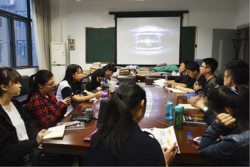 而后,分享正式开始。黄文洁同学在对作者霍金做了简介之后,从书中的第一章宇宙历史讲起,开始对本书的内容做出介绍,“宇宙起源于一个基点,在这个时候是没有任何的时间和空间的,一切处于有序的状态。当某种不稳定因素破坏了这个基点的平衡时,基点急剧膨胀,发生了大爆炸,才产生了时间和空间,渐渐地形成今天我们看到的这个宇宙。”她如是说到。在“时间与空间”一章,大家对黄文洁同学所讲的“时光穿梭机原理”展开了讨论。刘婷同学对用数轴知识来类比“过去”、“现在”和“未来”表示不理解,大家就从“平行时空”入手展开解释。讲完“物理学大一统”这章后,大家进入到讨论环节。