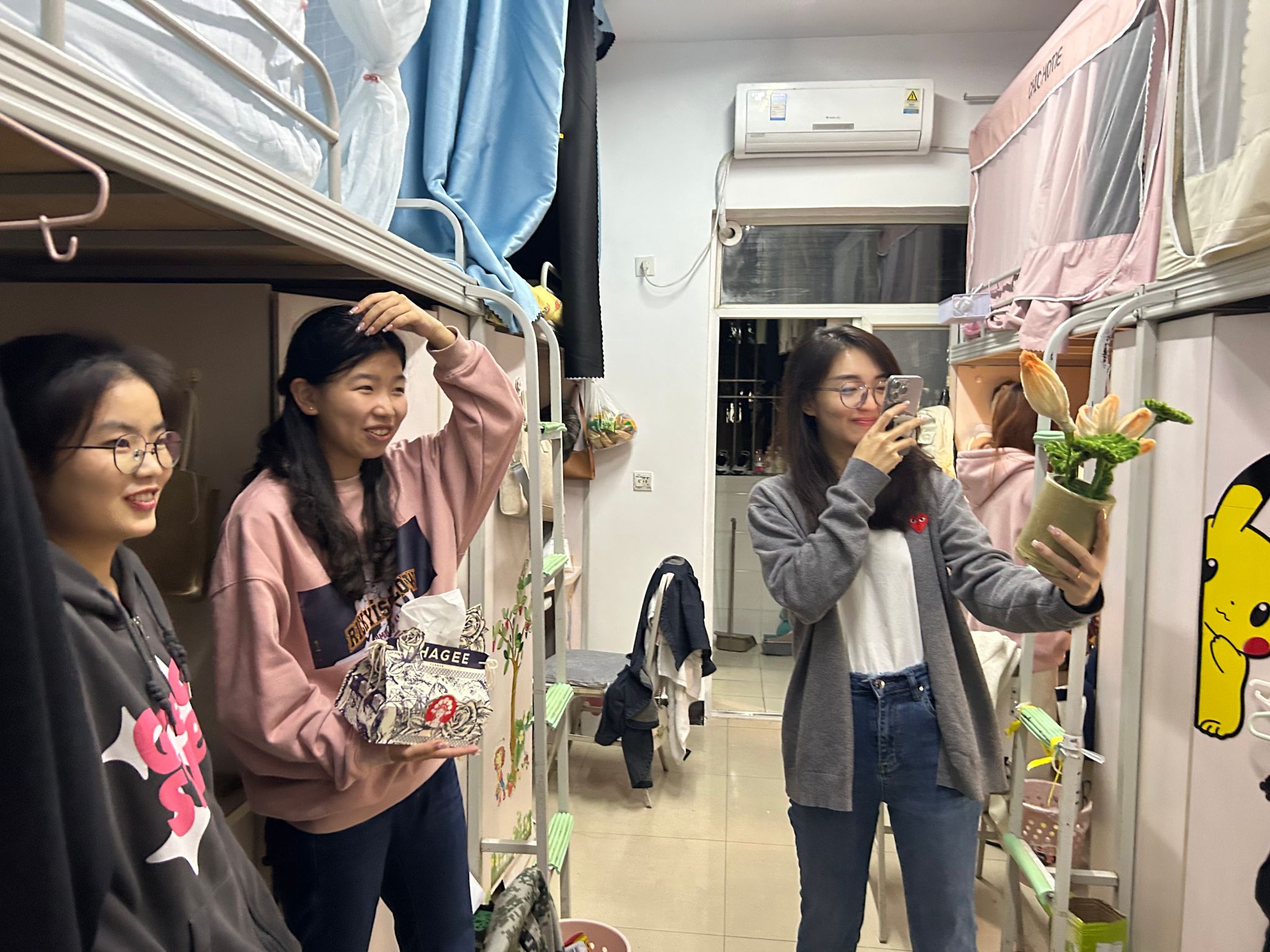 注意添衣保暖,预防流感。周桎宏老师与罗乔美老师分别前往2021级本科生以及2022级本科生宿舍。两位老师询问了同学们的学习生活情况,提醒各位同学注意宿舍安全,共同营造良好的生活、学习环境。