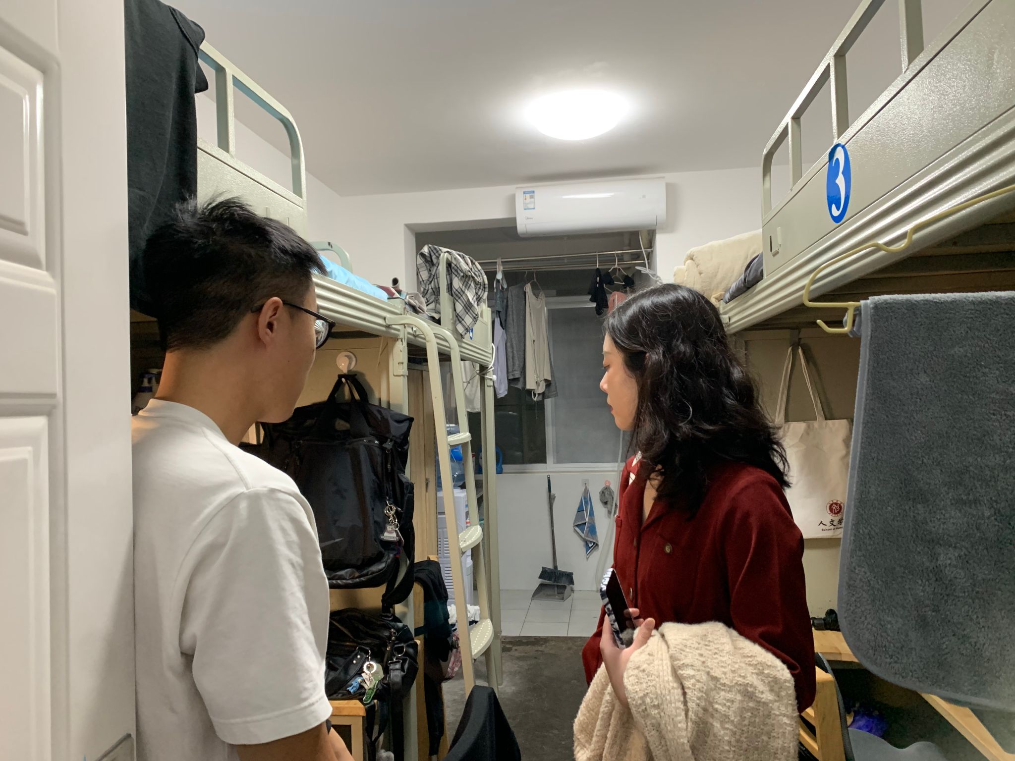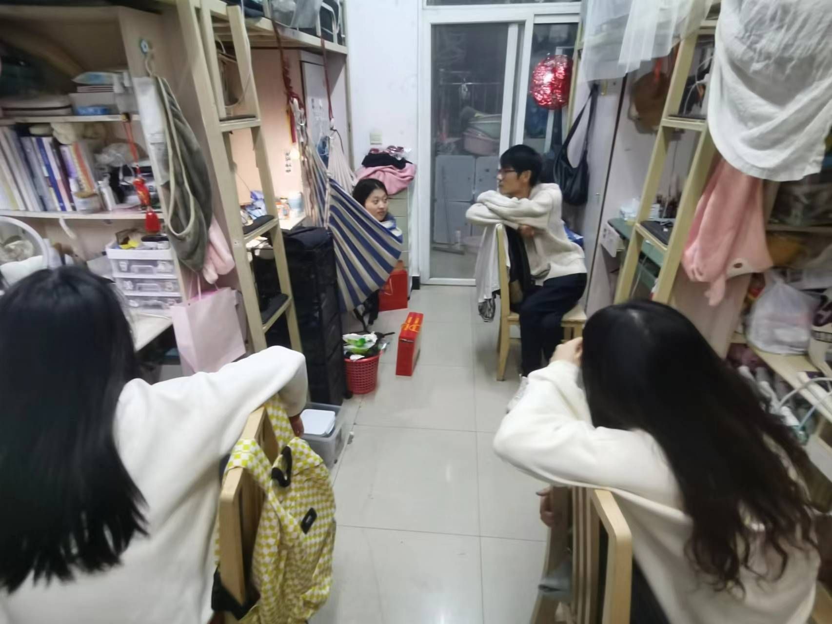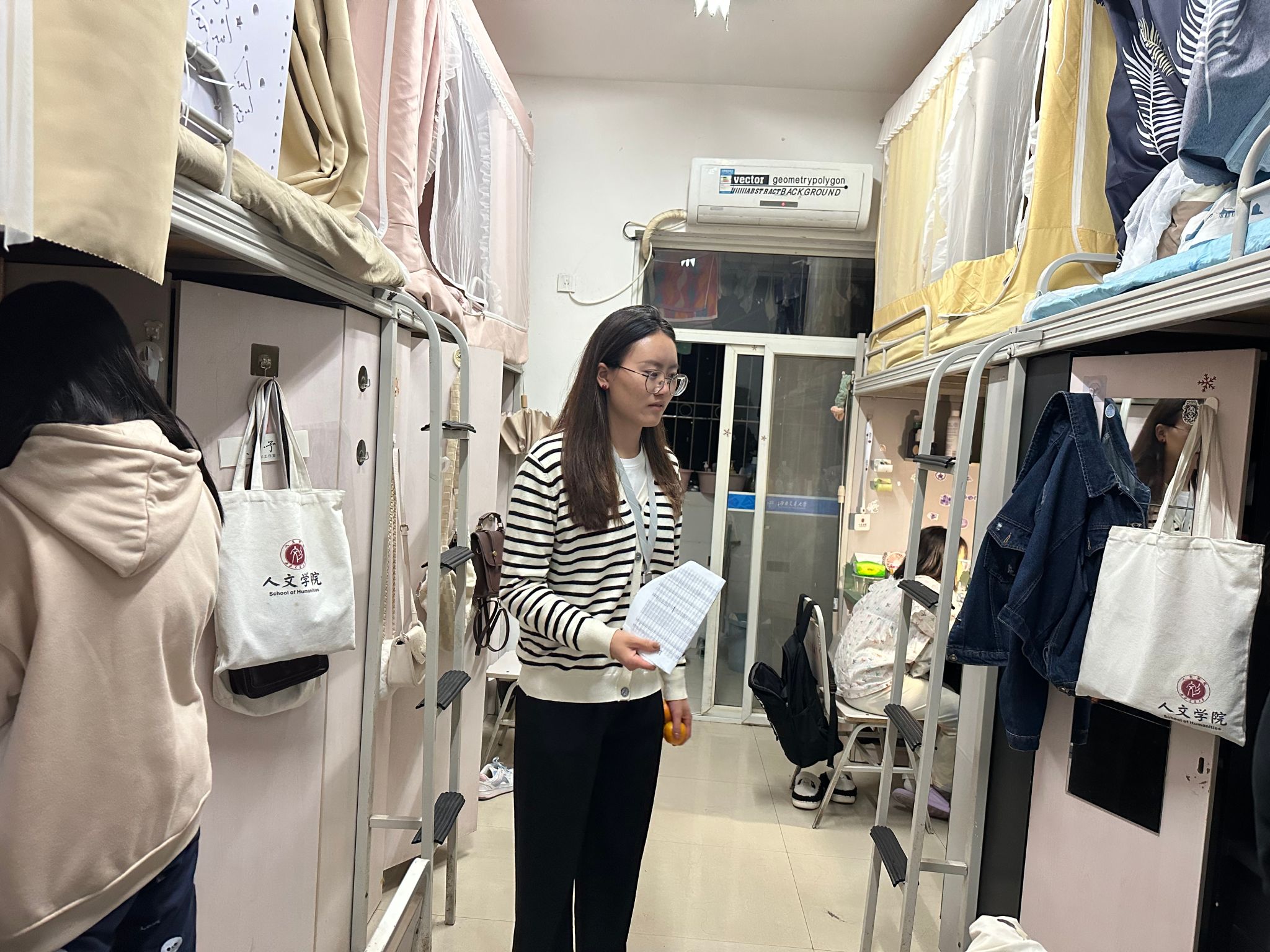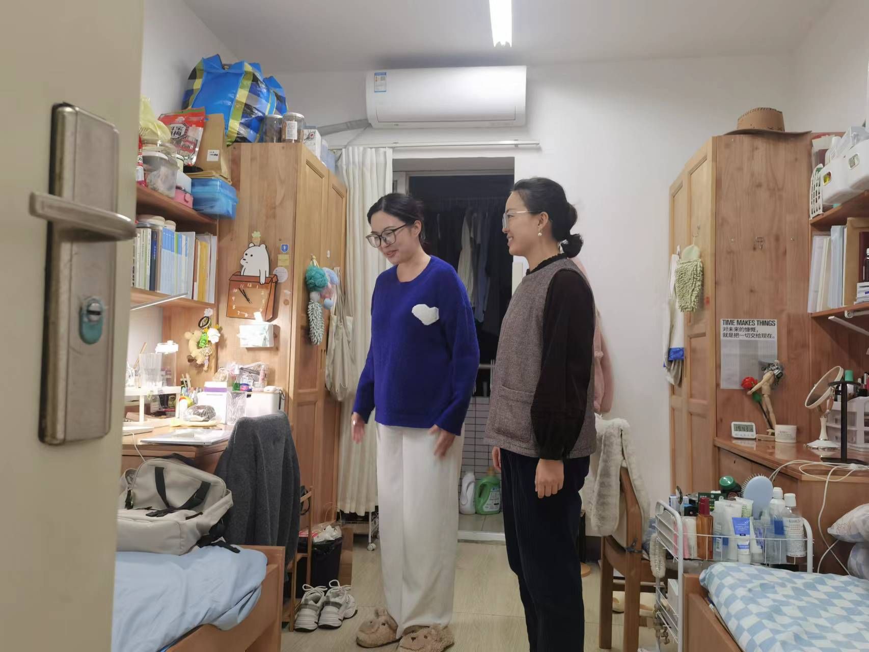 刘晗悦老师走访了2023级本科生宿舍,认真检查了宿舍的安全情况,并关心了同学们的身体健康,提醒在线直播