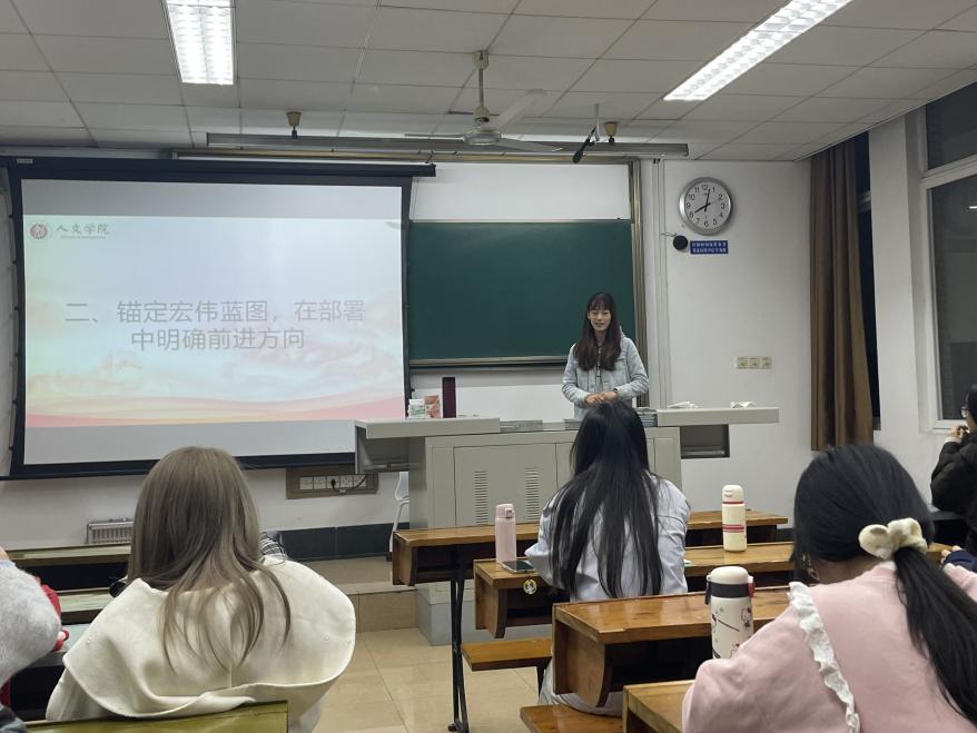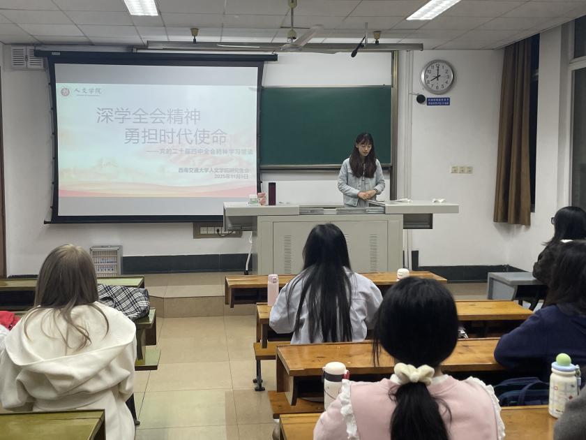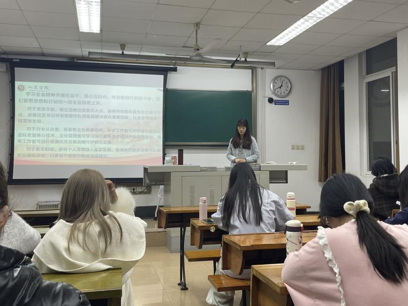 会于九里校区J4321教室举办主题为“深学全会精神 勇担时代使命——党的二十届四中全会精神学习领读”的思想政治学习会,本次学习由赖秋蕊同学主讲,在线直播