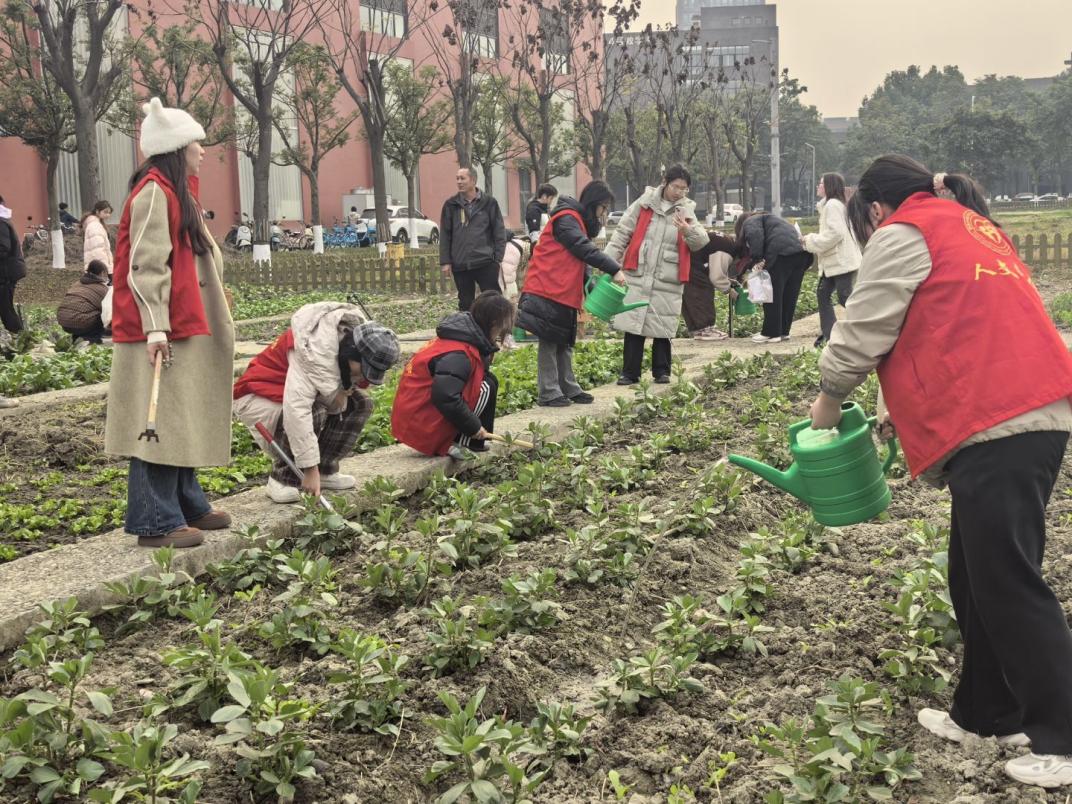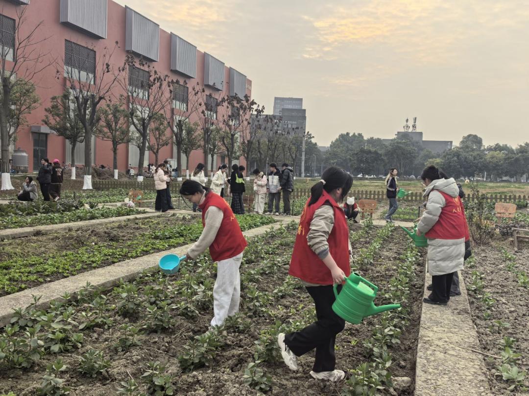 开展日常养护活动。在物业中心实践指导老师组织下,同学们针对近期农田杂草生长、土壤干旱等情况,开展了以浇水、除草、观察记录为核心的养护工作,在躬身劳作与细致观察中深化对劳动价值的认识。