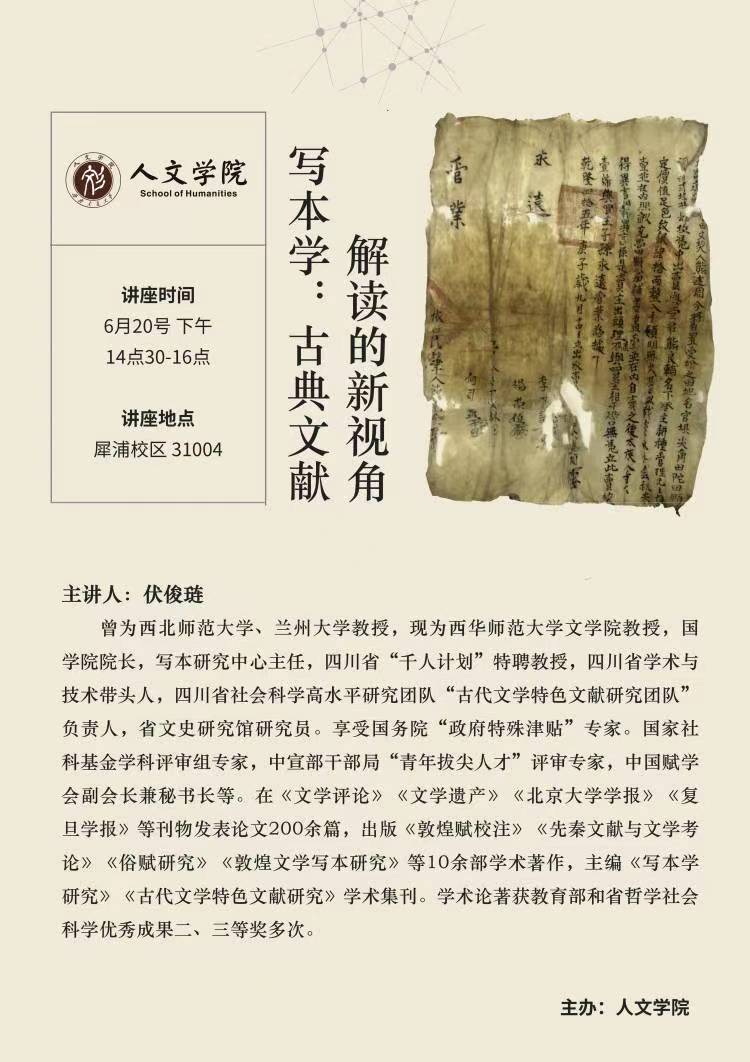 【讲座题目】写本学:古典文献解读的新视角